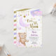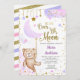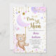 O convite à Chá de fraldas Lilac da Lua, para uma menina com lua, estrelas e belas cinzas de ouro.