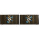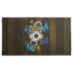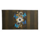 Composição do relógio de aço redondo com discagem numérica romana preta, decorado com engrenagens de ouro e latão, borboletas morfo azuis e lentes danificadas sobre fundo listrado castanho. Estilo Steampunk.