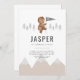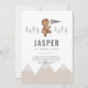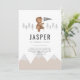 Um urso de aquarela segurando uma bandeira com um número '3', juntamente com árvores e montanhas à volta do projeto. Perfeito para a sua Festa de aniversário temática da floresta montanhosa! Você pode alterar o número 3 no sinalizador para qualquer número e editar todo o outro texto.