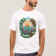 Camiseta básica com casaco de braços da República do Usbequistão, com ilustração de uma ave cercada por algodão e trigo