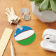 A bandeira do Usbequistão foi perfeitamente adaptada à FOB circular deste chaveiro. Um belo lembrete do patrimônio do Usbequistão.