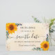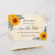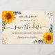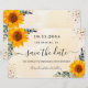 Uma tendência Salve a data para uma festa de aniversário 40th (ou qualquer idade). Um fundo branco na moda, decorado com girassóis, eucalipto, folhagem verde e ouro e pó de ouro falso. Personalize e adicione uma data, nome e texto. . O texto: Salvar a Data é gravado com um script de estilo com letra de tendência grande com alternâncias.