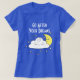 Ir atrás de seus sonhos está escrito em uma fonte branca vintage sobre um belo desenho de uma nuvem, estrelas e a lua. Esta camisa está disponível em muitos tamanhos, estilos e cores. Parece melhor em fundo de cor mais escura, então o texto branco pop! Você escolhe!