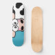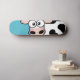 Pão de skate de vaca. Design apresenta uma vergonha de vaca branca e preta sobre fundo azul. Perfeito para patinadores de meninas. Design © Lisa Marie Robinson