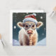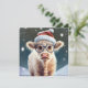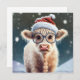 A imagem retrata uma adorável vaca das montanhas vestindo um chapéu festivo de Natal, acrescentando um toque de alegria de férias. A cena é colocada em um ambiente de neve, com flocos de neve suaves caindo do céu, criando uma atmosfera serena de inverno. O que torna a imagem ainda mais encantadora é a adição de óculos vestidos pela vaca bonitinha, dando a ela um olhar lúdico e carinhoso. A combinação do chapéu de Natal, o pano de fundo de neve, e os óculos brancos fazem desta imagem uma representação encantadora e animadora da época de férias. Imagem Gerada AI.