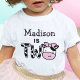Esta camiseta de vaca é uma roupa perfeita para segundo aniversário! Para alterar o nome, clique no botão "Personalizar" e digite um novo nome. Para ajustar tamanho e posição, clique no botão "Editar usando a ferramenta de design".