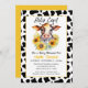 Vaca bonita com girassóis amarelos e as palavras Vaca Santa. Fazenda tema Chá de fraldas Convite para mãe. Um convite divertido que a mãe certamente ama. Excelente de fazenda para uma garota ou um garoto.