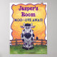 Poster de Sala Personalizada de Vaca Fofa com nossa vaca fofa da linha de Parada Animal pintada digitalmente por Traci Van Wagoner (www.tracivanwagoner.com). Esta linda vaca branca e negra está num campo verde com um céu texturizado amarelo-alaranjado e uma bela borda púrpura ondulada. Quem ama animais de quintal e vacas vai adorar ter esta poster na porta avisando os invasores. Acima da vaca estão as palavras em roxo e azul, (adicione seu nome), quarto, moo-ove longe! Veja nossa loja e colete todos os produtos divertidos em nosso Conjunto de Papelaria de Vaca.
