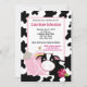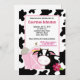 Um adorável convite à vaca Moo com uma fronteira de vaca negra e branca. Perfeito para qualquer aniversário de tema de fazenda, produtores de leite e amantes de vacas.