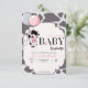 Vaca rosa preta com convite para chá de fraldas de