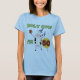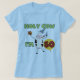 O texto lê "a vaca que santamente eu sou 50" em 50th t-shirt do aniversário, as canecas, os cartões, os botões, os ímãs, os selos postais, e o outro 50th roupa e presentes do aniversário com uma vaca bonito dos desenhos animados em um chapéu do partido que guardara um presente de aniversário e um cupcake do aniversário!