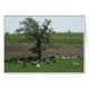 Vacas que param em uma árvore em uma placa de Vazio fotográfica ensolarada