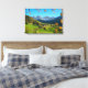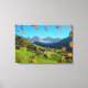 impressão da paisagem canvas da aldeia de Ruas. Magdalena ou Papais noeis Maddalena com a igreja característica em frente dos picos da montanha Geisler ou Odle Dolomites no Vale do Val di Funes (Villnoesstal), em Itália, no outono, rodeado de folhas de outono.