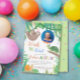 Celebre a adoção do seu filho com estes convites lentos de tema animal "que valem a pena esperar"! Adicione a foto do seu filho para torná-la pessoal. Com adorável preguiça pintada à mão, tartaruga e caracol pendurados na selva entre flores tropicais coloridas.