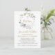 Bebê Baptism/Cartão de Convite de Natal. Este design apresenta uma ilustração da folhagem verde e ouro no estilo de aquarela com o efeito do ouro confetti no topo