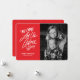 Vamos Adorar o Cartão de Natal Religioso dele com a Foto com a letra de mão solta em um fundo vermelho.