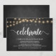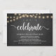 Vamos celebrar, Anúncio de Casamento / Convite, em quadro negro de fazenda rústica, design de luzes de corda. Isto é perfeito para o seu casamento e festa de celebração pós-casamento. Adicione seus detalhes em fonte / letra correspondente.