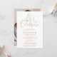 Este convite de formatura com escrita dourada elegante pode ser personalizado com os detalhes da sua celebração e foto no verso. Desenhado por Thisisnotme