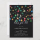 Nosso convite para festas de festas apresenta feliz e cordas brilhantes de luzes de natal ligadas a um fundo preto. O convite é perfeito para convidar seus amigos e família para um encontro festivo. O design geral é festivo e sofisticado, e o convite é para impressionar seus convidados.