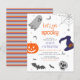O vamos do orçamento fica assustador no Dia das Bruxas qualquer convite de aniversário etário. Design moderno no Halloween para uma festa espetacular! Este convite de aniversário apresenta teia de aranha, fantasma, chapéu de bruxo, abóbora, morcegos, crânio, estrelas e lua crescente. Este convite é neutro em relação ao gênero - excelente para meninos e meninas!