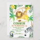 Procurando um convite de aniversário para animais selvagens ou selvagens? Este design bonitinho apresenta quatro safari de aquarela ou animais selvagens sobre fundo branco. O design apresenta algumas folhagens, árvores e bolinhas verdes claras. Para mais designs neste tema, visite a loja. O safari selvagem deste garoto ou vamos fazer convites de aniversário selvagens está pronto para ser personalizado.