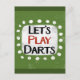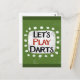"Vamos Jogar Dardos" é um design de texto fofo com uma forma de destaque branca cercada por pontos caprichosos texturizados em branco.