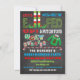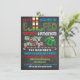 Enche-te com este incrível convite de Natal. Excelente para uma festa de suéter feia, Aquecimento Doméstico ou festa de elfo. Possui pernas de elfo, cana doce e um suéter feio de rena em um quadro negro com fundo de manchas.