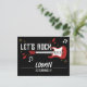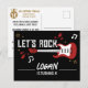 Vamos Rockar! Este convite de cartão postal impresso frente e verso é perfeito para uma festa de aniversário com tema de música rock and roll. A frente do cartão postal apresenta elementos pretos, dourados e vermelhos, incluindo uma guitarra elétrica, estrelas, notas musicais e raios. Personalize o verso do cartão postal com os detalhes da sua festa para o convite perfeito e envio fácil.