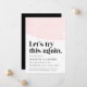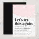 Precisa adiar ou alterar a data do seu casamento? Informe os convidados do casamento com nosso anúncio de adiamento de casamento moderno e trendy. Design sofisticado com um design de aquarela rosa claro no topo com "Vamos tentar isso novamente" em uma fonte preta ousada e estilosa. Personalize o anúncio adicionando seus nomes, detalhes do casamento e site do casamento.