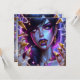 Convites de Halloween. Vampiro feminino com olhos e dentes dourados. presas Douradas, pele clara. Legal para o Halloween ou qualquer um que ama vampiros.