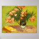Poster Van Gogh Oleanders. Pintura a óleo na canvas de 1888. Vincent Van Gogh é um dos pintores de flores do excelente da arte ocidental. O Oleanders é uma das mais belas pinturas florais de Van Gogh, apresentando um buquê de oleanders num pequeno vaso de marinho com alça de bronze. As flores de oleandro são rosas ricas e suas folhas são verdes vibrantes. Ao lado do vaso, há dois livros na mesa, acrescentando uma sensação de homenagem à pintura. Um presente maravilhoso para fãs de Van Gogh, impressionismo poste, oleanders, pinturas de flores famosas e arte francesa.