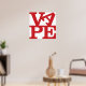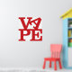 A palavra VAPE em letras vermelhas. As letras VA estão no topo (a A está entalada lateralmente) e a PE está no fundo. Uma homenagem à pop, dedicada a todos os vapores.