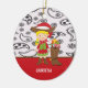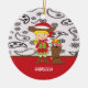 Esta é uma lembrança adorável. É um ornamento com um impressão ocidental branco na parte superior e a parte inferior é vermelha com uma tira marrom ao longo dela. No meio é uma vaqueira que veste botas de vaqueiro e um vestido vermelho com uma veste verde. Tem um chapéu de vaqueiro marrom sobre com um chapéu do papai noel sobre aquele. Ao lado dela é uma bota de vaqueiro marrom enchida com os presentes. Verifique para fora as muitas outras cores e design que nós temos em nossa loja. ilustrações do ©JW