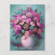 belíssimo vaso de flores em pintura a óleo. No verso a mensagem é "Flores para você..." Você pode personalizá-lo para qualquer ocasião, alterando texto, fonte, cor, tamanho e cor de fundo.