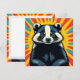 Cartão bonito com um texugo de pop de arte nele em um desenho de pop de arte no estilo de quadrinhos e o verso é vazio.