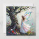 Um doce cartão para dizer oi a um amigo e desejar-lhe um dia mágico. A frente deste cartão tem uma bela e mágica cena com uma fada parada ao lado de um cheio de árvores de videiras e flores brancas.