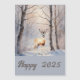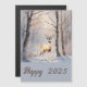 Este cartão magnético captura a beleza pacífica do inverno com um veado-roe aquarela em meio a árvores negras, colocadas em tons suaves e calmantes. Com o "Happy 2025" escrito em toda a cena, é uma perfeita manutenção para celebrar o novo ano. Ideal para amantes da natureza, adiciona um toque de encanto de inverno a qualquer superfície magnética.