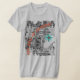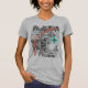 Uma camisa futurista com um intrincado padrão computacional / fractal / geométrico / algorítmico / caleidoscópico, luas em crescente e um símbolo para a ciência. O texto poderia ser personalizado. Cinza, laranja, azul turquesa