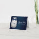 Um cartão de agradecimento de casamento em vidro mason de cores safira azul marinho profundo e escuro com um desenho de vaga-lume que parece brilhar. Adicione as iniciais e/ou monograma da noiva e do noivo ao vidro com um design de fita impressa. Um design rústico, porém elegante, com vaga-lumes encantadores dentro e fora do vidro. Esses convites são lindos para um casamento noturno, quintal, casa de fazenda ou tema country, aniversário ou festa de noivado ou chá de panela da noiva e/ou do casal. O lado externo, interno e verso do cartão podem ser personalizados para dizer o que você quiser e personalizados com as iniciais da noiva e do noivo. Arte © Chrissy H. Studios, LLC. Todos os Direitos Reservados.