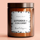 Esta design foi feita com simplicidade e elegância em mente. O design mínimo moderno pode ser usado com vários estilos de embalagem. Personalize este design com seus detalhes e use-o para todas as suas necessidades de vela. 6ADesign