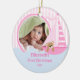 Os enfeites de natal náuticos bonitos da foto que caracterizam um veleiro cor-de-rosa com um urso ajustado em um fundo listrado cor-de-rosa & branco, apenas adicionam SUA FOTO! Aperfeiçoe para o primeiro Natal & o segundo Natal. Um presente do Natal da maravilha sure a ser estimado por muitos próximos anos. estúdio do ©Cocoa