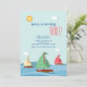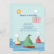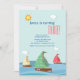 Três barcos a vela fofos estão navegando, cada um com uma vela de cor diferente. Perfeito para uma pequena "celebração de aniversário de marinheiro ou para trigêmeos.