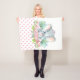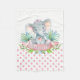 Cobertor de bebê elefante para meninas com adorável elefante bebê menina usando um laço rosa fofo em uma folha de palmeira e fundo de bolinhas rosa. Este cobertor de bebê elefante doce é facilmente personalizado com o texto de sua escolha.