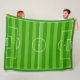 Um cobertor de fleece divertido e único para jogadores e fãs de futebol! Um campo de futebol padrão é retratado em grande detalhe e em escala, com todos os marcadores do campo (linhas laterais e linha de gol, linha e círculo de meio de campo, grande área e arco, pequena área, gols, etc.). O campo até tem tons alternados de grama verde clara e escura.