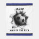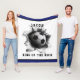 Cobertor de futebol criativo com design de bola de futebol voando. Para personalizar, edite o texto para adicionar o nome. Altere a cor de fundo azul para a cor do time com um simples clique.