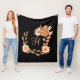 Velo Cobertor de Fleece Preto e Floral Pêssego Monogram