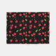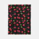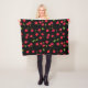 Um cobertor de velo de felpudo quente com um padrão de cereja único desenhado pela mão. Perfeito para acampar, se abraçar no seu sofá com uma xícara de chá quente, e compartilhar com seus entes queridos. Tem um fundo preto.