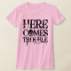 Vem aqui o problema:: Lindos, divertimento e nosso sujo vêm aqui as características da camisa do problema uma tipografia afligida vintage da rocha e um emoticon pequeno selvagem no centro. Nosso vem aqui o design do problema é cheio da atitude má da menina e do fun.com