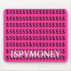 Um mousepad elegante do rosa quente com sinais de dólar pretos e logotipo branco de ISPYMONEY.