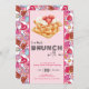 Traga as vibrações da diversão para o seu brunch de celebração! Fácil de personalizar com os detalhes da sua festa. Apresentando gráficos cor-de-rosa e vermelhos bonitos (morangos, pretzels, waffles e sorvete) e título de na moda: "Venha brunch with me" usando fontes modernas de blocos e scripts.